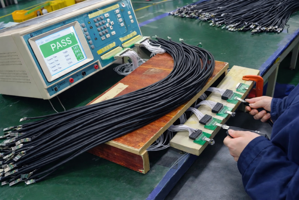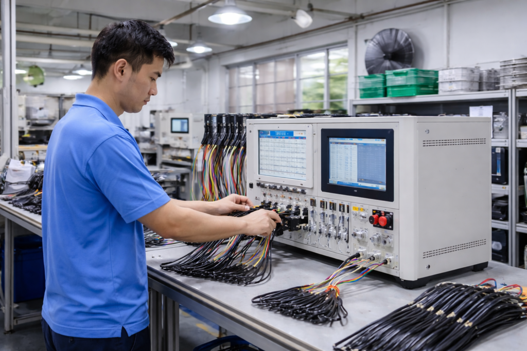 Testing is carried out during production to verify continuity, connection stability, and basic electrical performance before cables move to the next process.