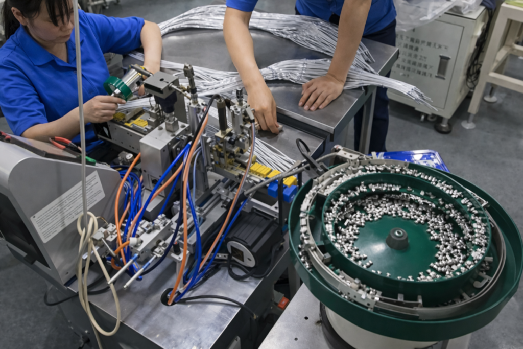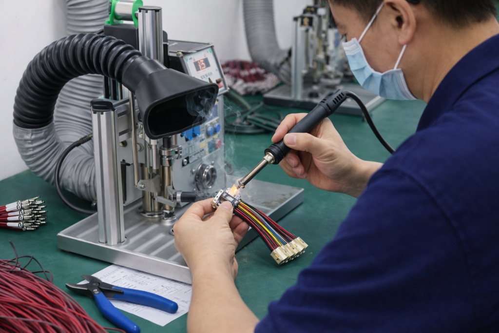 Cutting, crimping, soldering, and harness assembly completed inside our factory.
